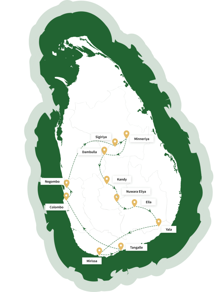 Relax in the morning by the beach or enjoy spa treatments before transferring to Colombo. If time permits, explore the city briefly before reaching the airport for your departure. Carry with you cherished moments from a romantic journey through Sri Lanka’s diverse landscapes.